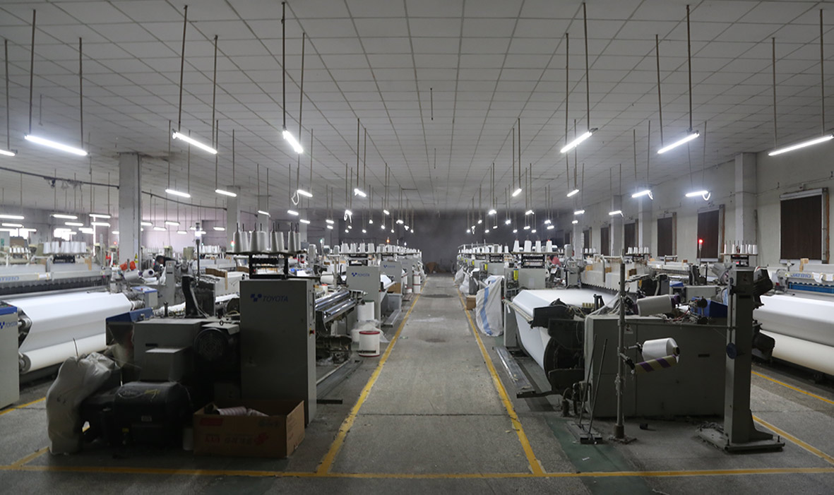 公司引進(jìn)國(guó)內(nèi)外先進(jìn)設(shè)備,擁有250臺(tái)單噴噴水織機(jī),120臺(tái)雙噴織機(jī)及80臺(tái)多臂織機(jī),2006年又新安裝了120臺(tái)日本豐田噴氣織機(jī)(230cm)。進(jìn)口津田駒3m寬整漿并設(shè)備3套,國(guó)產(chǎn)分條整經(jīng)車(chē)4臺(tái),假捻設(shè)備80臺(tái),倍捻設(shè)備180臺(tái)。
